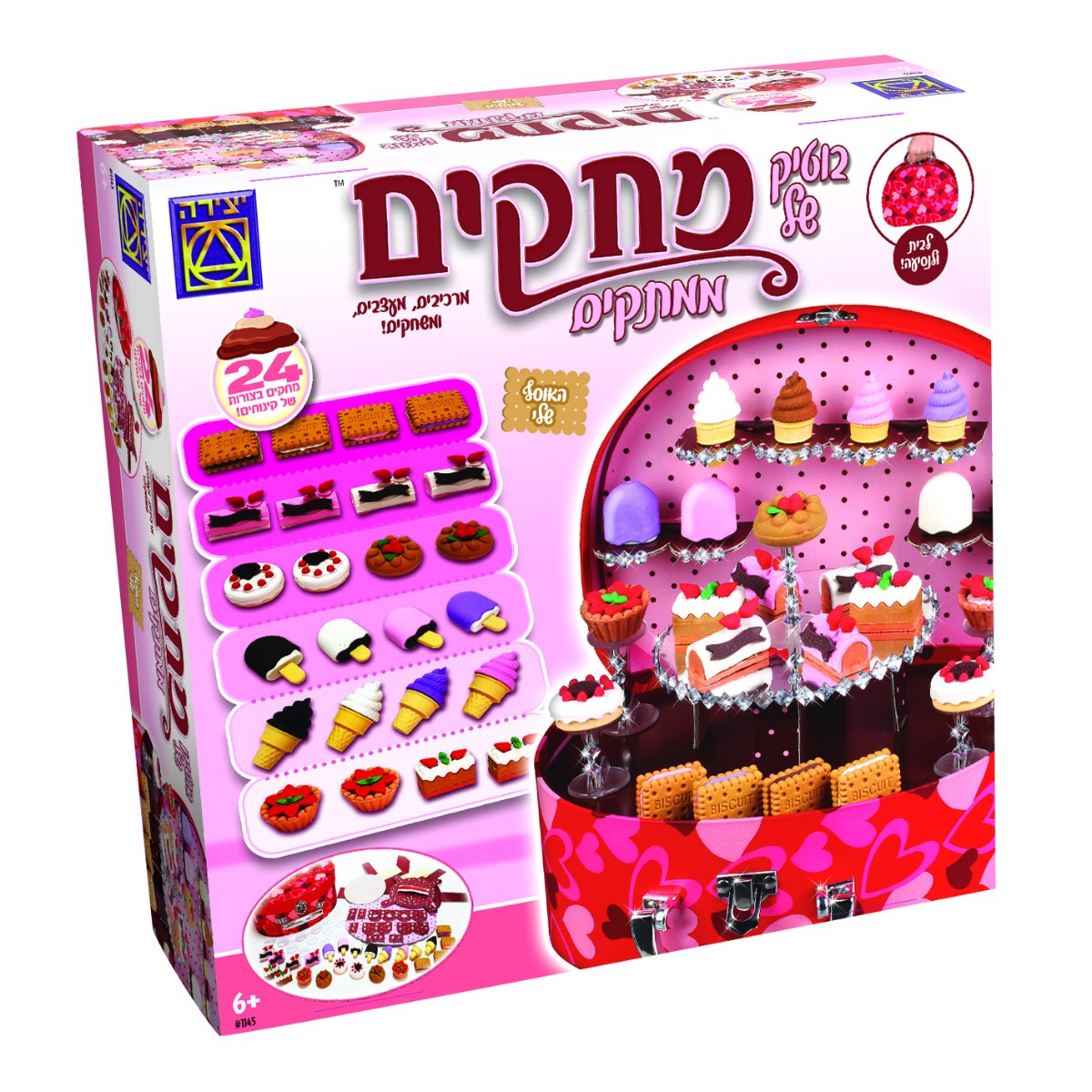 גיל 6 ומעלה. חלום ,דמיון ויצירתיות בחנות מאפים,הגלידות והפינוקים המתוקים…מעצבים את הבוטיק באביזרים יפים,מציבים לתצוגה ומגשימים חלום מתוק.24 עוגות וגלידות העשויות מ-מחקים!