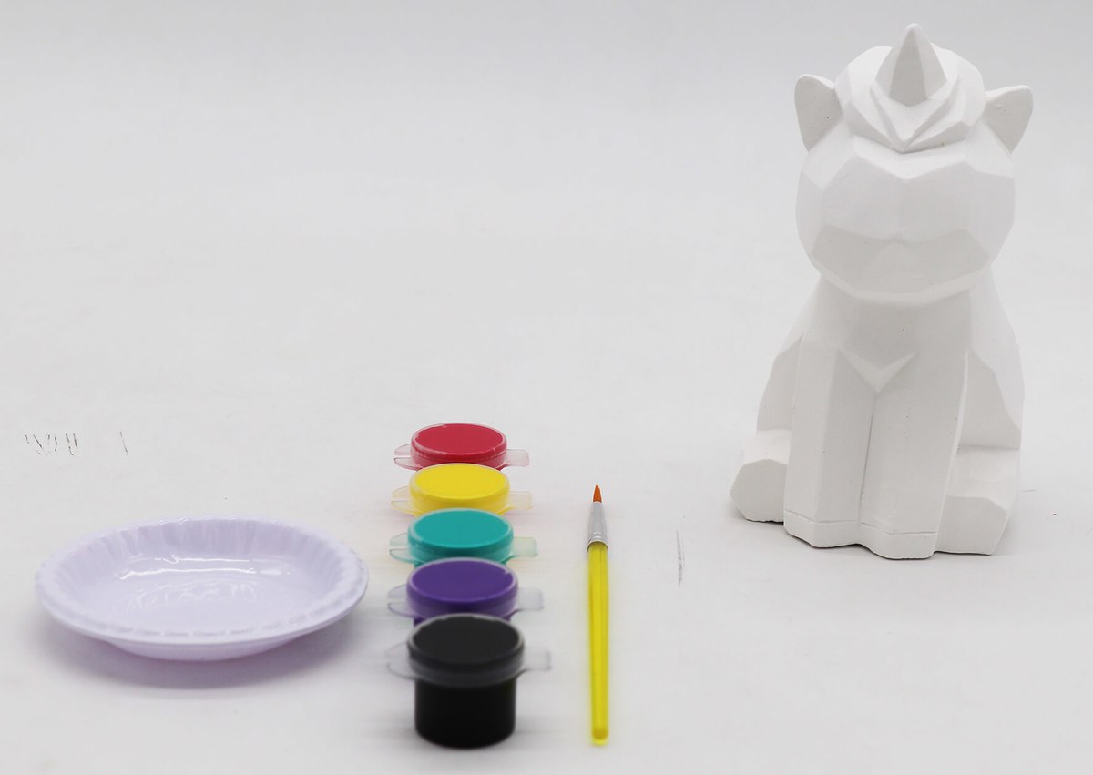 ערכת יצירה מושלמת לשעות הפנאי עם הילדים, דמות גאומטרית ודאקורטיבית של חד קרן מגבס .הערכה כוללת: חד קרן מגבס, צבעים, מכחול ו2 משטחי צביעה.