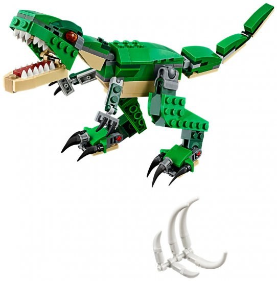 אם אתם אוהבים דינוזאורים אתם תאהבו לשחק עם דינוזאור הטי-רקס האימתני בעל הצבעוניות ירוקה כהה עם עיניים כתומות בוהקות ושיניים מחודדות במיוחד. ליד הטי-רקס יש את הטרף של בתצורת צלעות שניתן לבנות. לאחר שתשחקו עם הטי-רקס תוכלו בסט 3 ב- 1 להפוך אותו לטריצרטופס עם קרניים ענקיות או פטרודקטילוס מעופף.