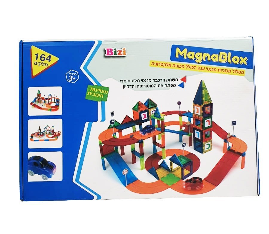 MAGNABLOX|מגנה בלוקס- מסלול מכוניות מגנטי הכולל מכונית אלקטרונית- 164 חלקים