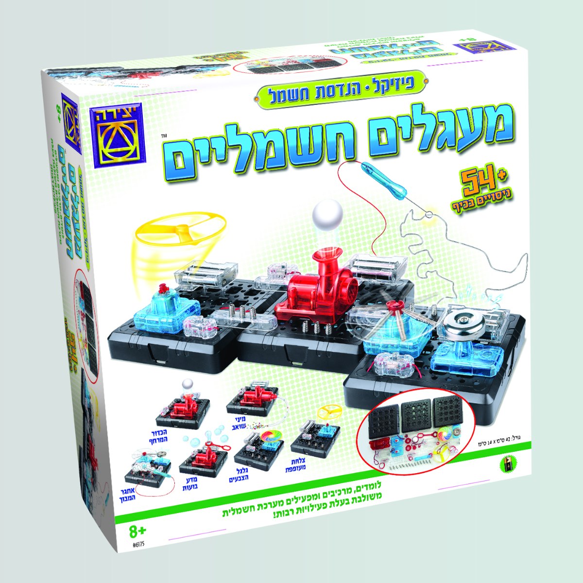 באמצעות ערכת היצירה ילדכם יוכלו לבצע ניסויים מעניינים בתחום הנדסת חשמל ולרכוש מיומנות וידע דרך התנסות מעשית אמתית! לומדים להרכיב מבוך, כדור מרחף, מיני שואב, מכשיר בועות, גלגל צבעים וצלחת מעופפת. לומדים, מרכיבים, ומפעילים מערכת חשמלית משולבת בעלת פעילויות רבות.